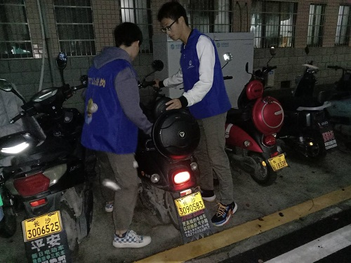 活动中,志愿者们严肃认真对待工作,不停走动观察,以规劝引导为主、强行制止为辅,引导规范停车秩序,为同学们创造良好安全的出行环境。面对违停车辆,志愿者们登记违停车辆准入证与车牌号,为后续公示处罚等做准备,警示同学合理规范停车。即使长沙已入深秋,天色暗得较早,并偶伴小雨,但这丝毫不能阻挡志愿者们的脚步,园区的各个停车点附近都留下了他们的足迹。
