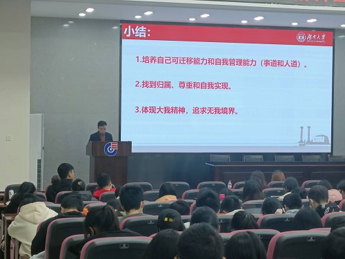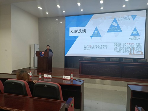 首先是“我们为什么要做学生干部”,做学生干部能够提高人的三种技能——专业知识、可迁移技能、自我管理技能。然后,潘书记通过“怎么样做学生干部”和“优秀的学生干部应该是怎样的”两个层面向各位学生干部提供了一部高质量学生干部养成秘籍。潘书记指出作为学生干部,要能说会写、敢于创新、善于总结、肯于奉献。最后,潘书记提出了对学生干部的三点期待:“听话”、“出活”、“快乐”。