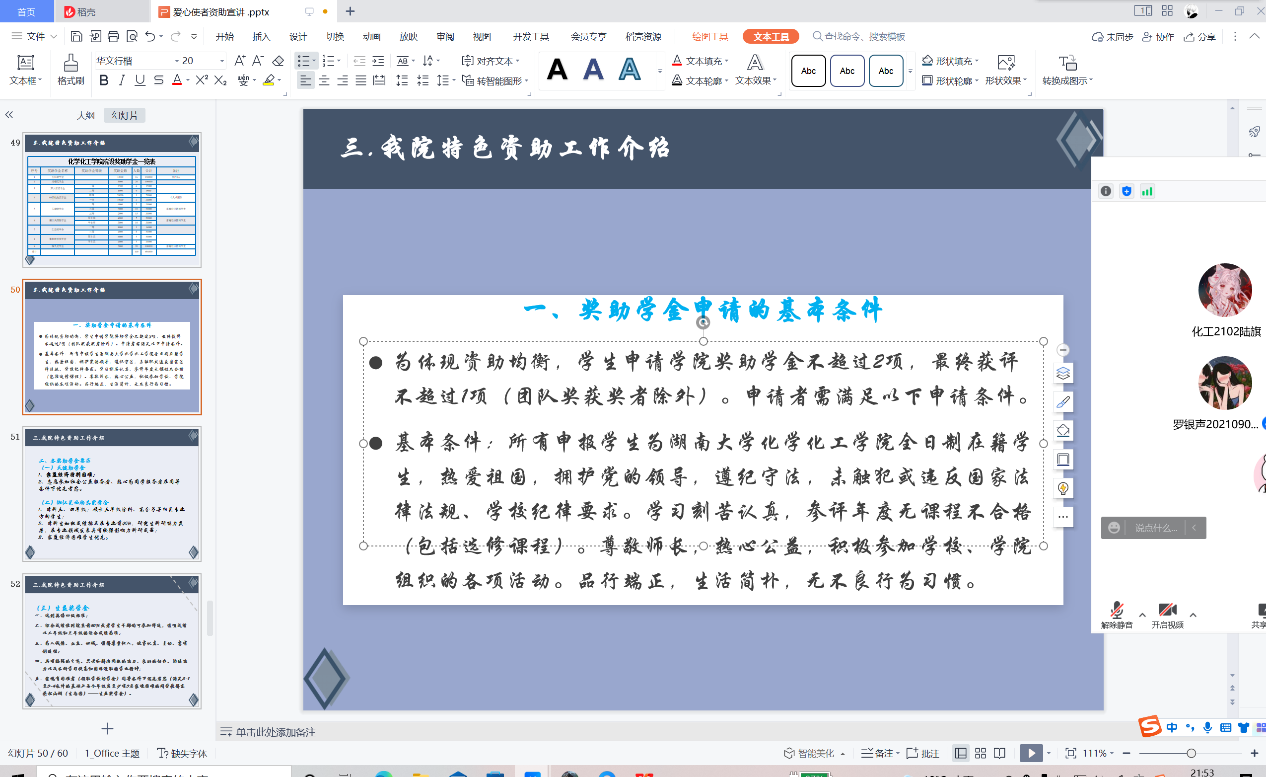 特殊资助工作介绍和资助问题相关补充四个方面进行了H视频