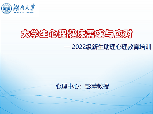 心理中心彭萍教授通过腾讯会议面向全校新生助理开展了“大学生心理健康需求与应对”主题心理教育培训,H视频