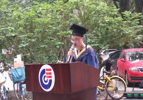 紧接着,毕业生代表吴勇强同学发表毕业感言。吴勇强首先对学院提供的良好学习环境、导师的耐心指导和谆谆教诲及那些曾经帮助过他的老师、同学表达了由衷的感谢。回顾三年研究生生涯,他感到忙绿而充实,辛苦并快乐,也曾感到过孤独和害怕,但那些困难都已成为历史。即将从学校步入社会,他将始终牢记自己是一名湖大人,将积极为社会发展贡献自己的力量。在发言的最后,他也祝福所有毕业生以梦为马,不负韶华。