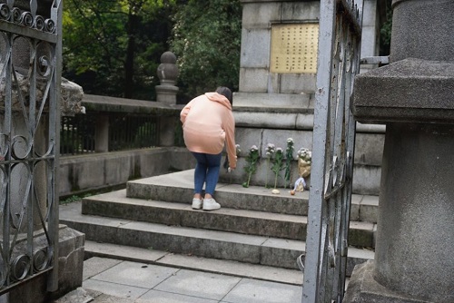 了解完规则后,活动开始。同学们登上岳麓山,前往“黄兴墓”和“蔡锷墓”处,向先人献花并祭扫墓园,还从“守关人”处了解到了先人的廉洁事迹。“蔡锷先生任职期间,始终以‘淡泊明志,夙夜在公’为自己的座右铭,还凭着廉洁的信念,在每月工资仅为60元的生活条件下向国家捐献了20万。”“守关人”细致的讲解不仅让同学们清楚地了解到先人在艰苦时期的事迹,也帮助同学们寻找秘密钥匙以尽早通关。