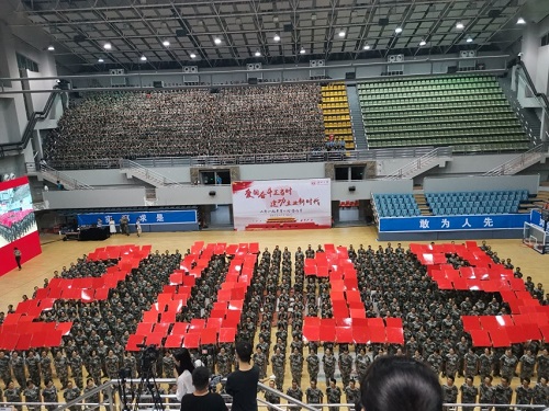 2019级本科新生合唱大赛在南校区体育馆举行,全体新生为祖国献歌。