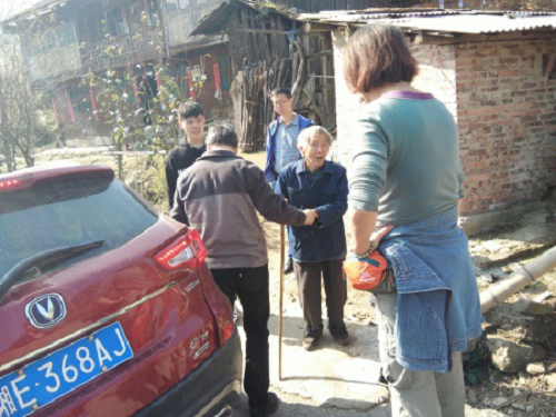 临走前,老人坚持拄着拐杖送大家到大路上,虽然老人年纪大了,说话也不那么清晰,但他对党和国家的感谢之情却深深地印在每个党员的心中。