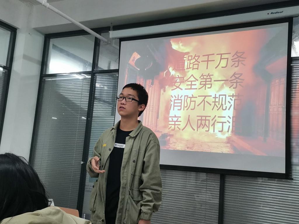 学习委员同学在游戏过后,向大家讲解了有关于火警报警的注意事项,比如要讲明方位,不要慌张,要说明火灾类型等等。