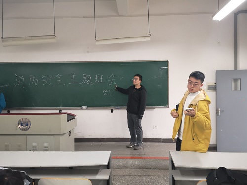 1129日下午1430,为积极响应学院号召,加强消防安全工作,化工1803班在综合楼举办了“消防安全”主题班会。本次班会由生活委员郑博文同学主持,化工1803班同学全部参加。