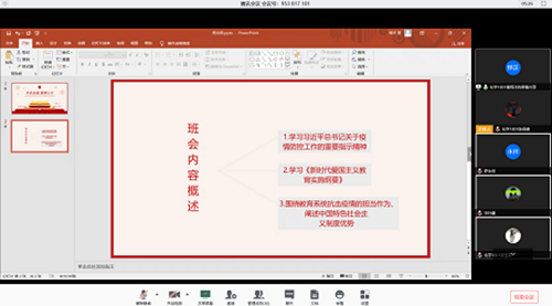 为响应习近平总书记关于打赢疫情防控狙击站的重要指示精神,深入推进爱国主义教育,2020年3月,化工院18级的所有班级,相继在腾讯会议上开展了云班会,并邀请辅导员,班导师一起携手抗疫情。