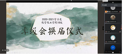 18级年级会换届大会在腾讯会议举行,化工院2018级全体本科生在线观看。大会内容分为以下三项:
