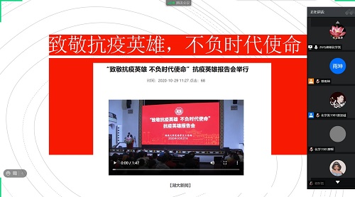 2020年10月27日下午,“致敬抗疫英雄,不负时代使命”抗疫英雄报告会在H视频