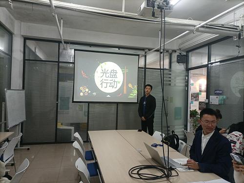 开展的光盘行动做了详细的介绍以及意义阐述,号召同学们积极参与光盘行动,并学习勤俭节约美德、拒绝铺张浪费行为。紧接着,于浩洋同学向同学们展示了舌尖上的浪费现象,以及校园里存在的浪费粮食行为,让同学们直观的体会到浪费积少成多的严重性。同时播放相关视频,同学们从视频中看到了农民种粮的不易与辛苦,更加凸现浪费行为的可耻。