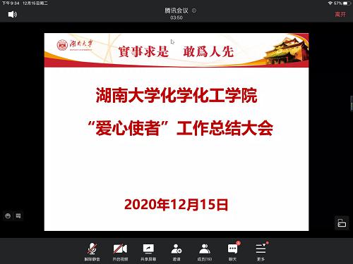 2020年度“爱心使者”工作总结大会顺利召开。此次会议由化工院资助助管王一鸣主持,参与会议的成员还有化工院资助兼干于哲老师和“爱心使者”团队全体成员。此次会议意在全面总结化工院2020年度“爱心使者”工作,并对下一年的工作部署作出相应安排。