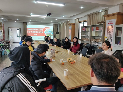 会议伊始,全体留校学生进行自我介绍,分享各自留校的原因,并发出新年愿望;院长张晓兵教授非常感谢各位同学关心学院的发展,舍弃寒假休息时间,为学院的发展做出贡献,并寄语全体同学:“今天你以湖大化工院为荣,明天湖大化工院以你骄傲”;院党委书记王玉枝教授询问同学们的生活是否可以得到保障,有问题可以及时向学院老师提出,希望同学们要做到安全有保障,祝愿同学们在长沙、在学校过一个欢乐、祥和、愉快的春节;院党委副书记潘刚峰老师向同学们介绍了学校给予留校学生的暖心服务,同时学院会给予留校同学最大的支持与关怀。