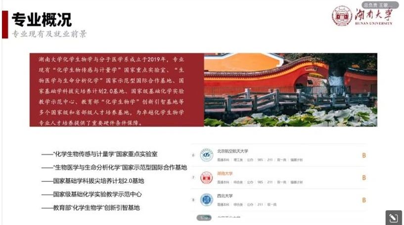 总负责王蒙作化学生物学专业介绍,从专业概况、培养特色、师资力量及毕业前景四个方面展开介绍。