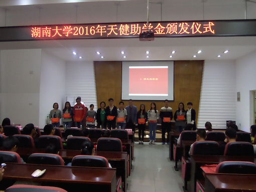 天健助学金的资助人—葛大庆先生读书时期曾受助于希望工程,所以他格外感恩社会对他的帮助。葛先生学有所成之后,他希望自己可以力所能及地回馈社会,因此设立天健助学金来帮助贫困学子完成学业,减轻家庭经济负担,实现人生目标,并为社会培养出一批批优秀的高素质人才。天健助学金共设立三个奖项,由学生成绩和家庭情况综合评定。自2010年设立天健助学金以来,今年是天健助学金颁发的第六个年头。六年以来,化工院共收到葛先生的捐款四十余万元,受资助学生多达160余人。