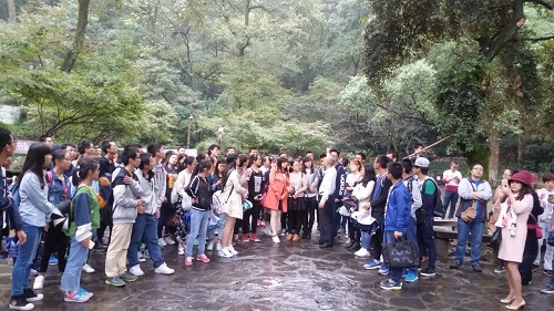 感受过岳麓书院的人文风光后,龙兵老师又带领同学们来到了园林,来感受岳麓书院美丽的自然风光。虽然是自然风光,但这里的一草一木都透露着浓厚醇香的文化底蕴。步入后,犹入潜龙之穴,一种深邃、悠静的气息扑面而来。同学们参观着那些古老的树木,看到展示树木标签上标明的保护单位是H视频