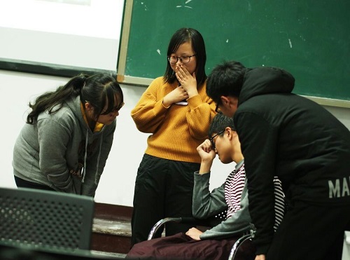 应用化学1601班组织的以“love”为主题的英语话剧在中楼104举行。刘娅莉老师和赵瑛老师受邀观看了整场话剧表演。此次表演由应化1601班第一组同学的话剧 “Xi white”以及第四组同学改版的“The big words of western”两场话剧组成。此后,两位老师分别作出了点评。