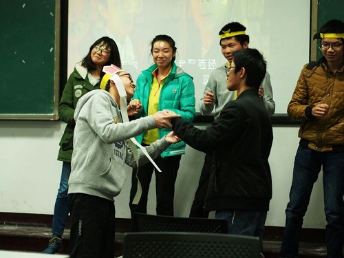 接下来的表演便是由姚兰、罗中昊等六名同学出演的话剧“The big words of western”。话剧演绎的是王璐同学饰演的紫霞仙子与罗中昊同学饰演的至尊宝的幽默而凄美的爱情故事。整个话剧走的是幽默风格,张寒松扮演的唐僧用无厘头的歌曲逗笑了在场的同学与老师,阵阵笑声萦绕在整个教室中。