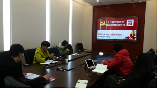 首先,由陈晓晖老师带领各学工人员共同学习了十八届六中全会精神。十八届六中全会精神的学习从十二大关键词切入:全面从严治党、坚持以党的领导为核心、党内政治生活、党内监督和人民群众监督、纪律严明、党内民主、反对腐败、高级干部坚持以身作则、权力监督、群众路线、民主集中制、正确选人用人导向,并联系工作生活实际,将十八届六中全会精神转化并应用于学生工作的开展。如在工作中要多听学生发音,百花齐放,但在最后也好把好关。随后又分别对十八届六中全会审议通过的三大文件:《关于新形势下党内政治生活的若干准则》、《中国共产党党内监督条例》、《关于召开党的第十九次全国代表大会的决议》进行较详细的学习。