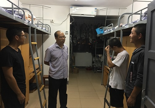 在学生寝室里,老师们亲切地与同学交谈,详细了解学生住宿生活情况,询问同学们在寝室生活上遇到的问题并给予建议,对于17级新生,老师们还耐心地指导他们使用空调等电器,叮嘱他们注意寝室安全,谨慎用电,杜绝使用违禁电器,严禁夜不归宿,注意寝室卫生,保持整洁。新生们仍记得教官在军训期间提出军训内务的要求,并按照该要求整理内务。放眼望去,每间寝室依旧保持着军训期间的整洁度,老师们十分满意。老师还查看了各年级各个寝室的室内地板整洁程度、鞋椅、桌面物品、衣物放置、床上物品、阳台物品等的摆放等情况。整个检查过程十分顺利。