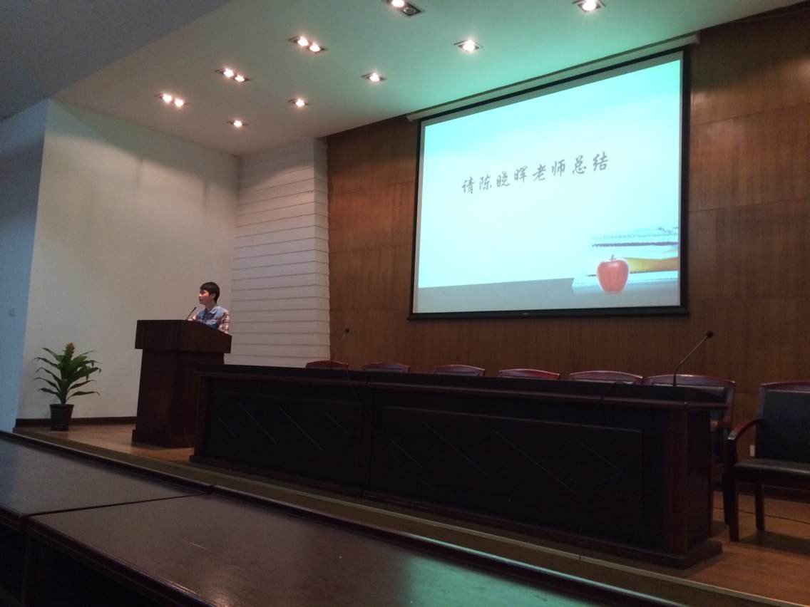 最后,辅导员陈晓晖老师进行了总结性发言。首先,他对年级上一学年多个零挂科班集体和个别进步较大的班级给予鼓励和肯定。他指出,大三学年是大学生活和学习的一个重要转折点,许多同学马上将要面临着考研、保研或者准备寻找工作的重要选择和挑战。他强调,在这一重要环节同学们更应该不懈怠不放弃,在面临各种选择的同时抓紧时间学习,只有朝着一个伟大的目标不断前进,坚持到底,才能为以后的工作和学习打好基础,攀人生之高峰,品生活之美!