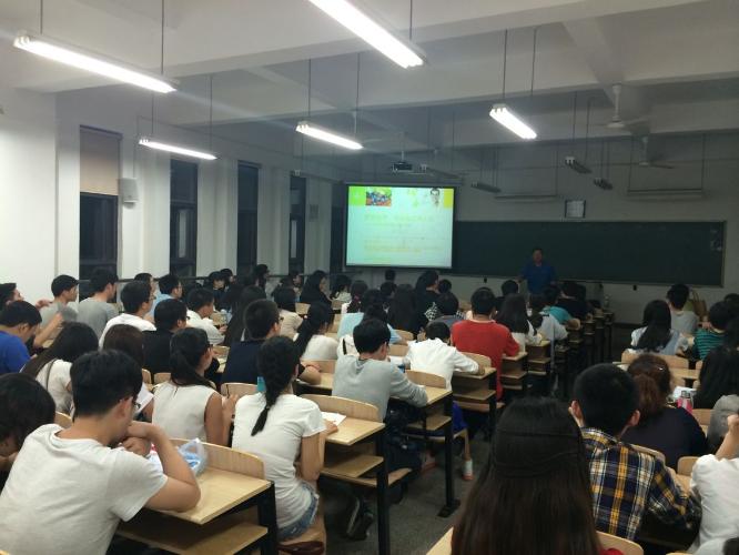 教授郑群怡博士作为嘉宾,到场的观众为大三学生,现场座无虚席。