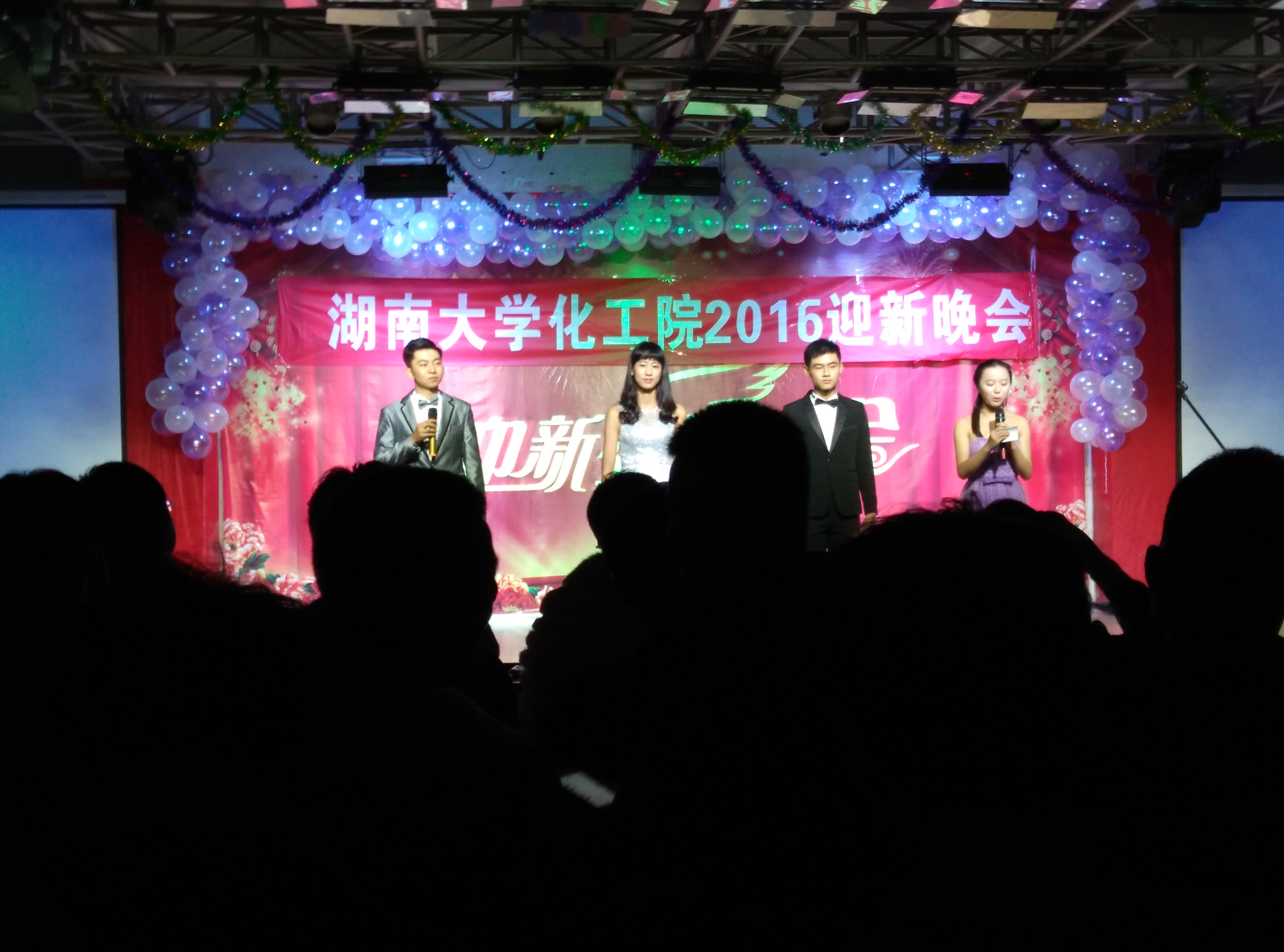 2015级迎新晚会在工会中心顺利举办,晚会节目内容丰富,精彩纷呈。老师、同学们欢聚一堂共度新年。晚会的成功举办不仅体现了15级年级会团结协作、脚踏实地的工作态度,更展示了化工院15级新生的活力和风采,全体同学表示要以更饱满的姿态和学习的热情迎接新年。