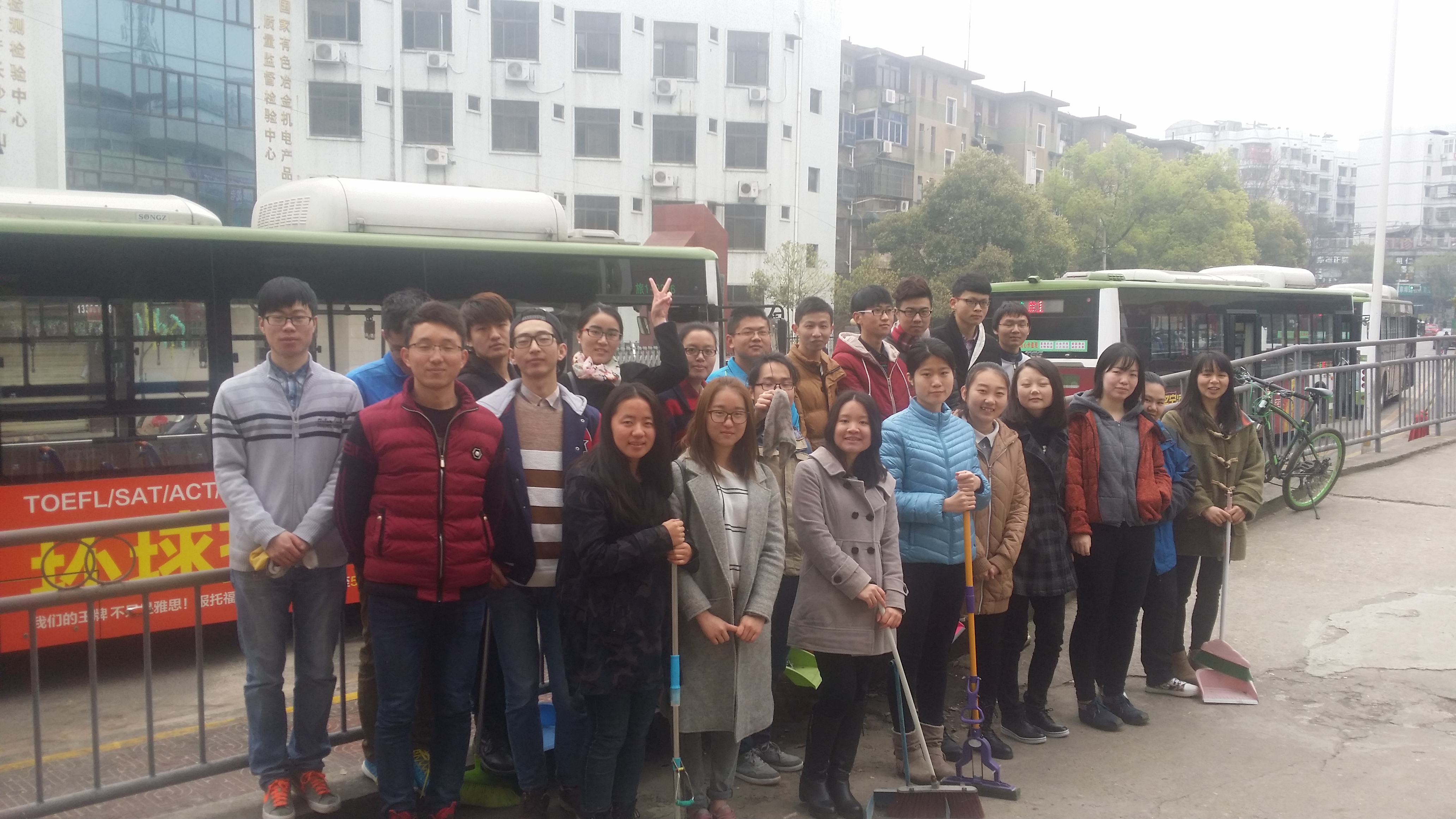 应化1301班团支部组织开展了以“文明乘车,快乐同行”为主题的公交美容志愿活动。