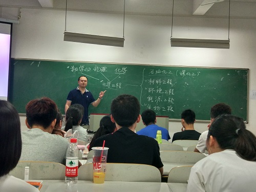 紧接着,罗潇老师以合成氨工艺为例,给同学们讲解了化学工程所涉及到的反应器设计,反应后气体的分离,反应控制,以及化工模型的建立等部分知识,并将我们大学四年的专业课和化学工程的流程对应起来,让同学们了解了化工专业课程的整体设计和所学课程的实际意义,也让同学们找到今后学习的重点。