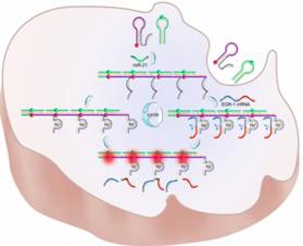 针对乳腺癌的诊疗一体化策略:乳腺癌细胞高表达的miR-21触发产生放大的检测信号,同时激活核酶切割EGR-1 mRNA,导致细胞凋亡。