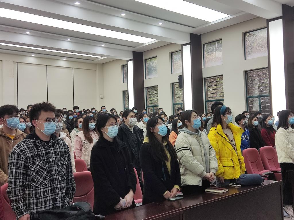 组织学院研究生在新化工楼D区报告厅集体观看全国政协十三届五次会议开幕式。