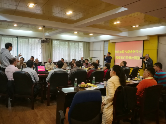 10月15日上午,H视频 金防专业77校友回母校团聚座谈会在新化工楼D204会议室举行。学院党委书记王玉枝教授对校友长期以来对学校和学院的支持和关心表示衷心的感谢,院长蒋建晖教授向各位校友介绍了学院近年来的发展情况。