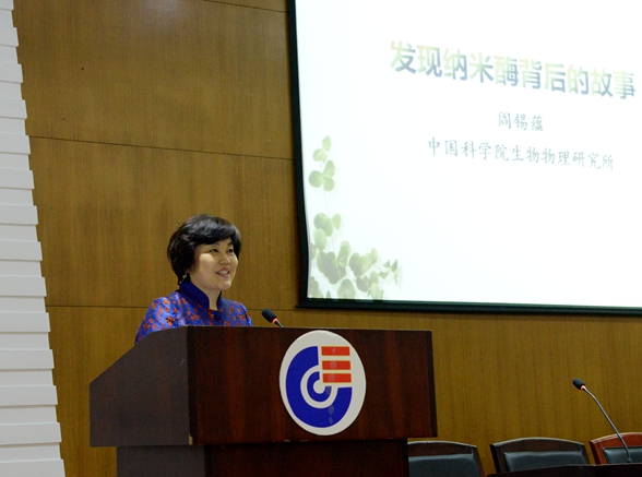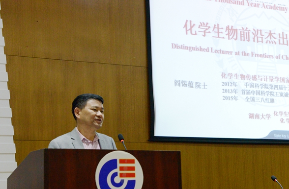 2017年10月17日,应化学生物传感与计量学国家重点实验室谭蔚泓主任邀请,中国科学院生物物理所研究员、博士生导师阎锡蕴做客“千年学府论坛--化学生物前沿杰出学者讲座”,作题为“发现纳米酶背后的故事”的学术讲座。副校长谭蔚泓主持讲座,全校200余名师生参加。