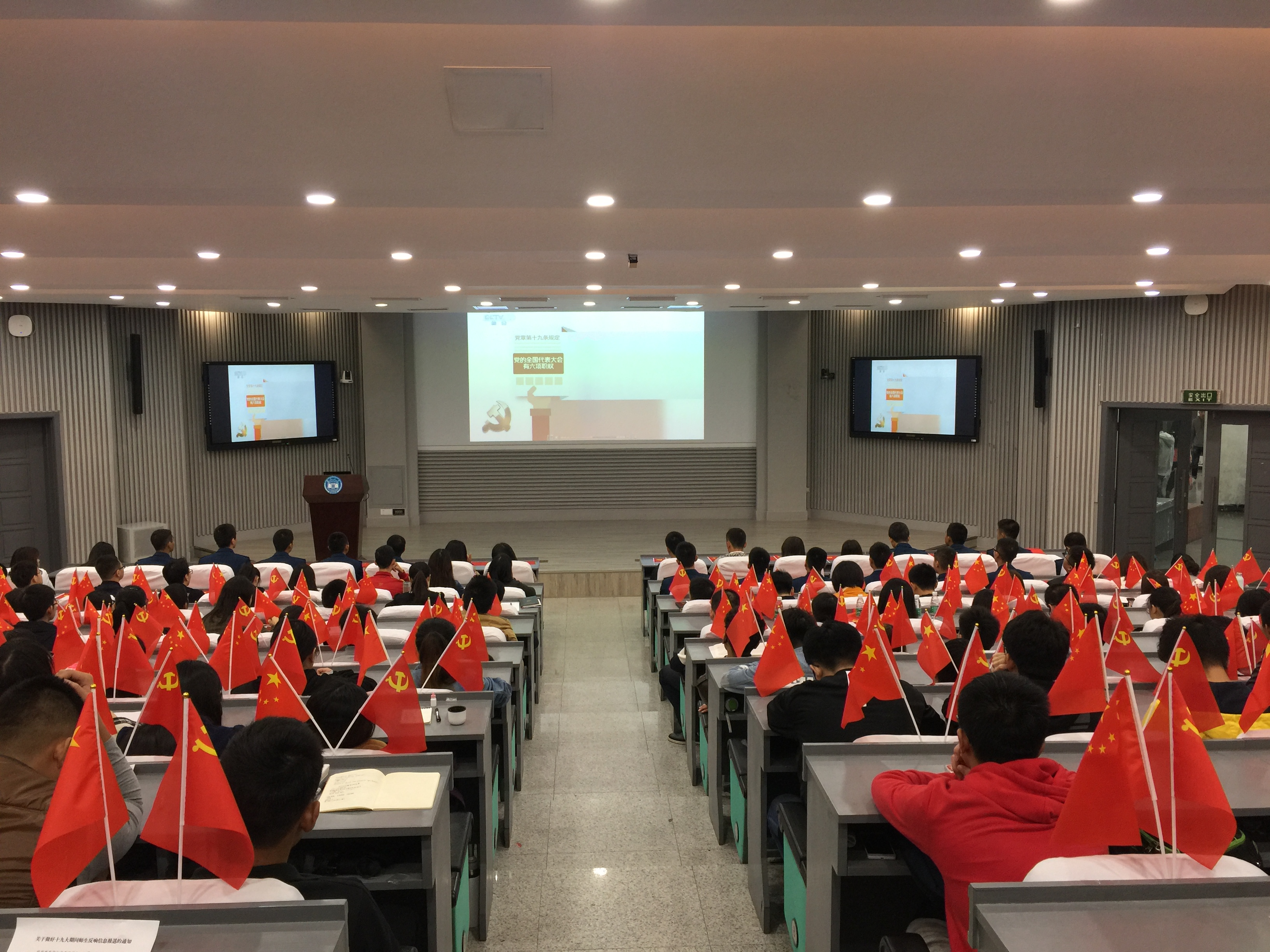 2017年10月18日,为迎接党的第十九次全国代表大会的召开,经学校统一安排,学院统一组织,H视频 全院师生分别在复临舍报告厅、实验室、寝室观看十九大的开幕式直播。