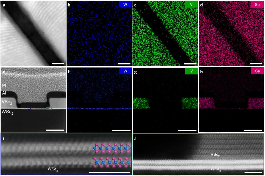 超短沟道双层WSe2晶体管的TEM表征。