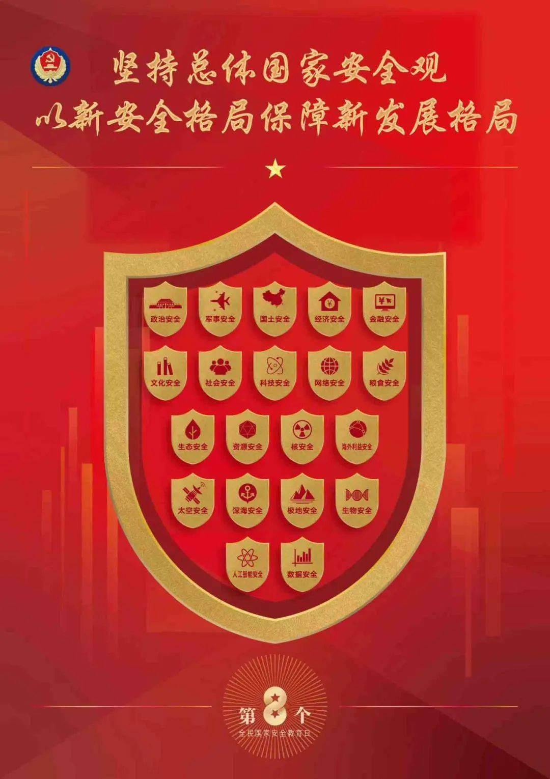 今年4月15日是我国第8个全民国家安全教育日。主题为: 贯彻总体国家安全观,增强全民国家安全意识和素养,夯实以新安全格局保障新发展格局的社会基础。