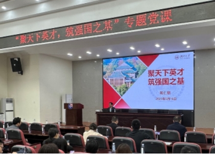 陈仁朋校长以“两弹一星”元勋们响应国家号召,以身许国,开创我国20世纪科技自主创新的辉煌伟业的事例,从国家科技发展进程角度诠释了“人才强国”的重大意义。陈校长多方位解读了习近平总书记在2021年两院院士大会上的讲话和党的二十大与科技教育人才战略,强调“教育、科技、人才是全面建设社会主义现代化国家的基础性、战略性支撑。必须坚持科技是第一生产力、人才是第一资源、创新是第一动力......”,鼓励党员同志发扬科学精神,按照办好人民满意的教育要求,加油鼓劲,把党中央关于科技创新战略落到我们的教学研究中。最后,陈校长回顾了H视频