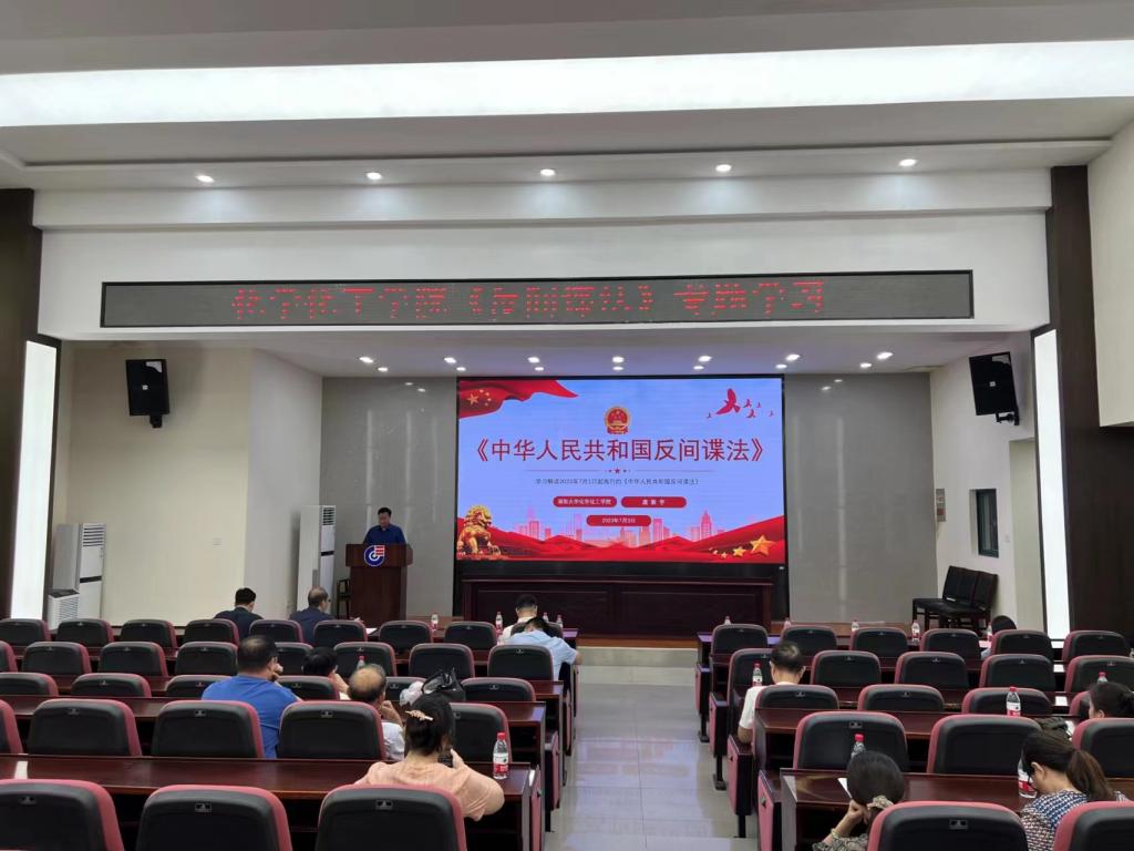 7月3日上午,学院在新化工楼D区报告厅组织开展《反间谍法》专题学习。全院教职工参加会议,会议由学院副书记纪委书记楚霞主持。