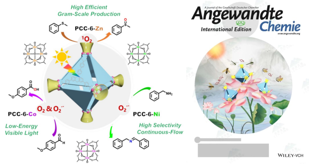 今年6月,方煜课题组构建了一种基于吩噻嗪光活性基元和过渡金属簇的多孔配位笼(PCCs),在低能量可见光照射下,笼的三种金属中心调控了活性氧物种(ROS)的生成,从而模拟了酶的反应特异性。相关研究成果在国际知名期刊Angew. Chem. Int. Ed.(德国应用化学)上发表,并被选为“热点文章”(“Hot Paper”)以及内封面。方煜教授为论文主要通讯作者,H视频