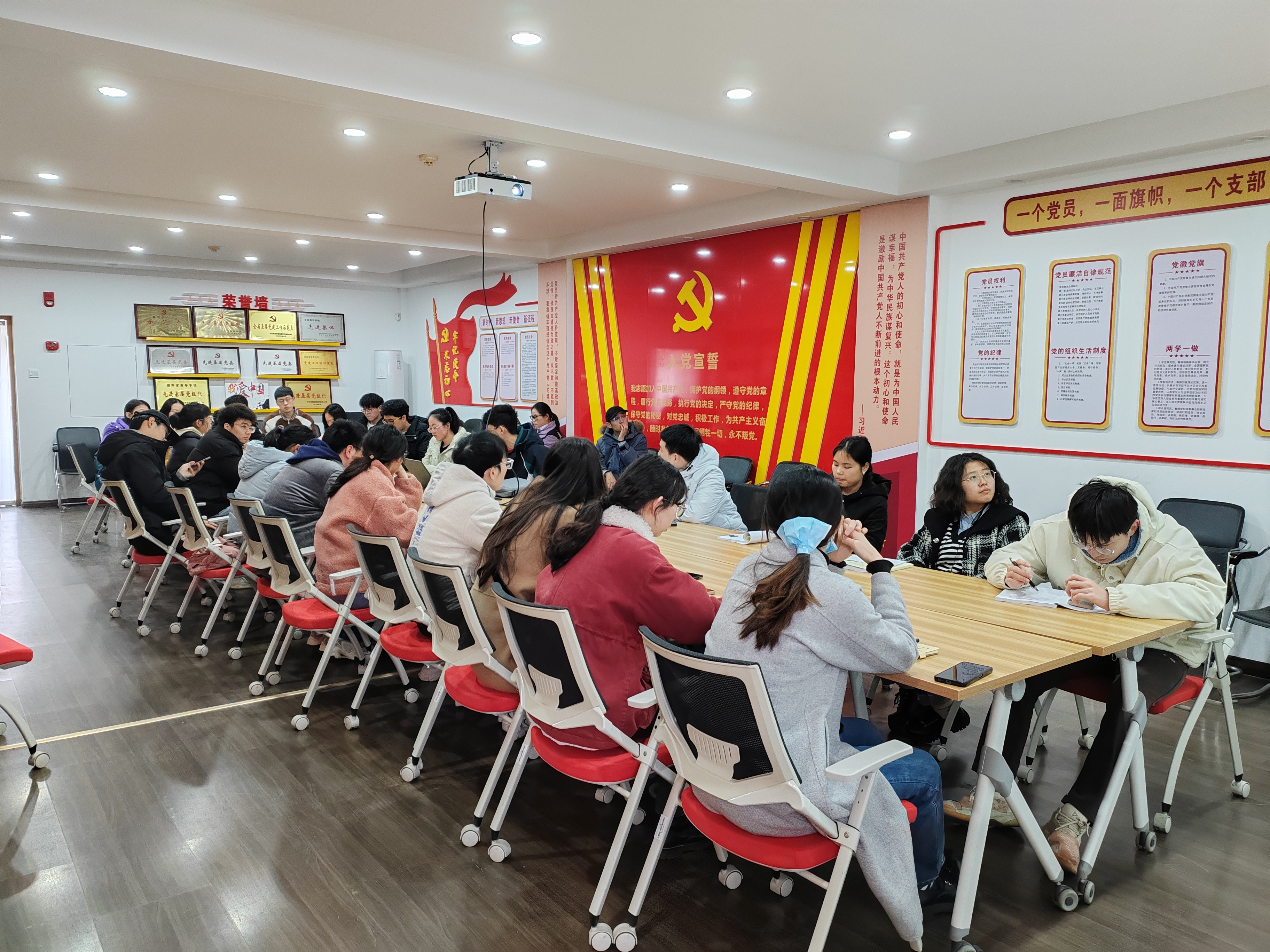 党员活动室举行学生党支部书记培训会。学院学生党建工作负责人徐晓宇、27名学生党支部书记、学生党建服务中心党建骨干参加了本次培训会。