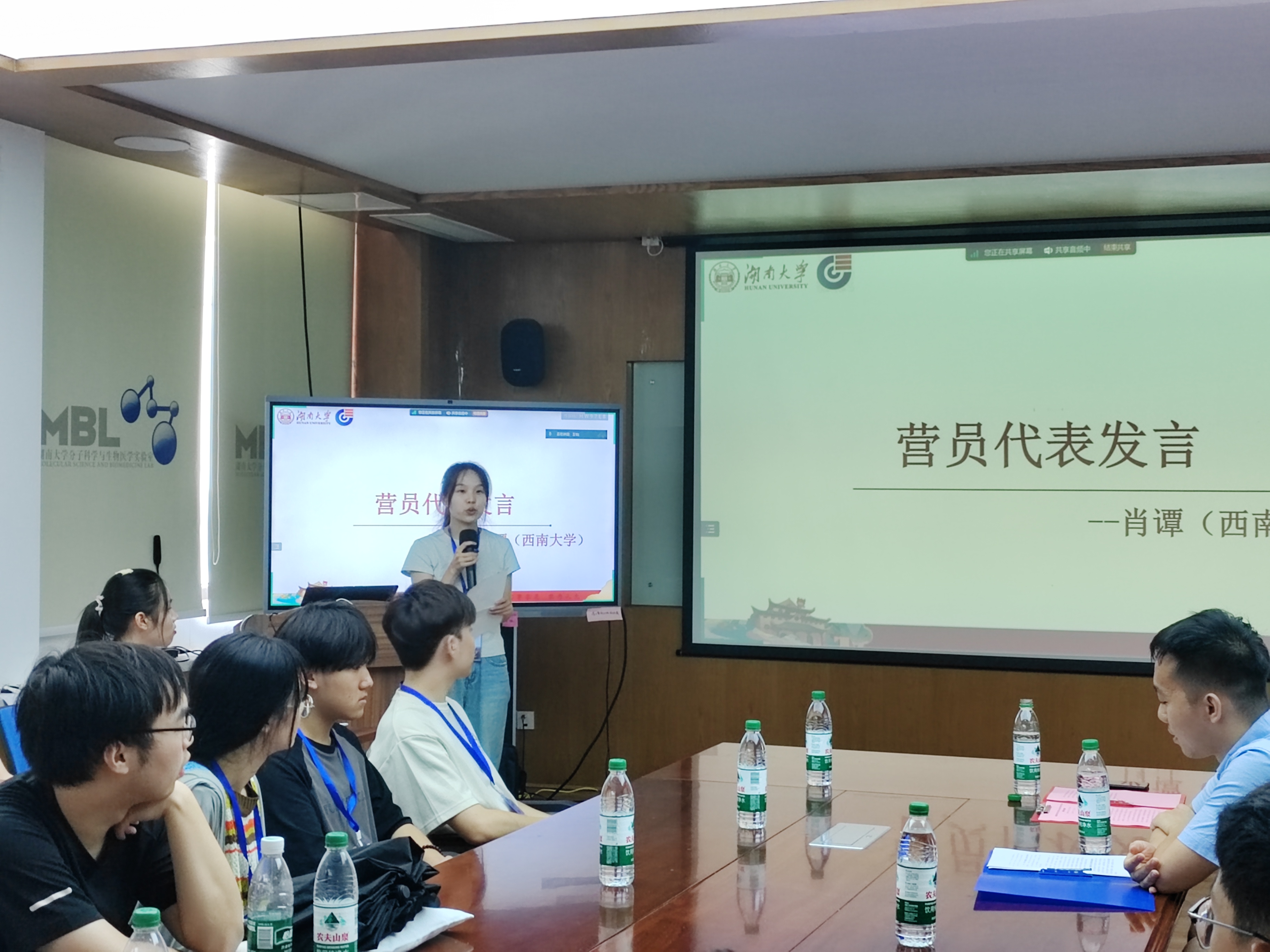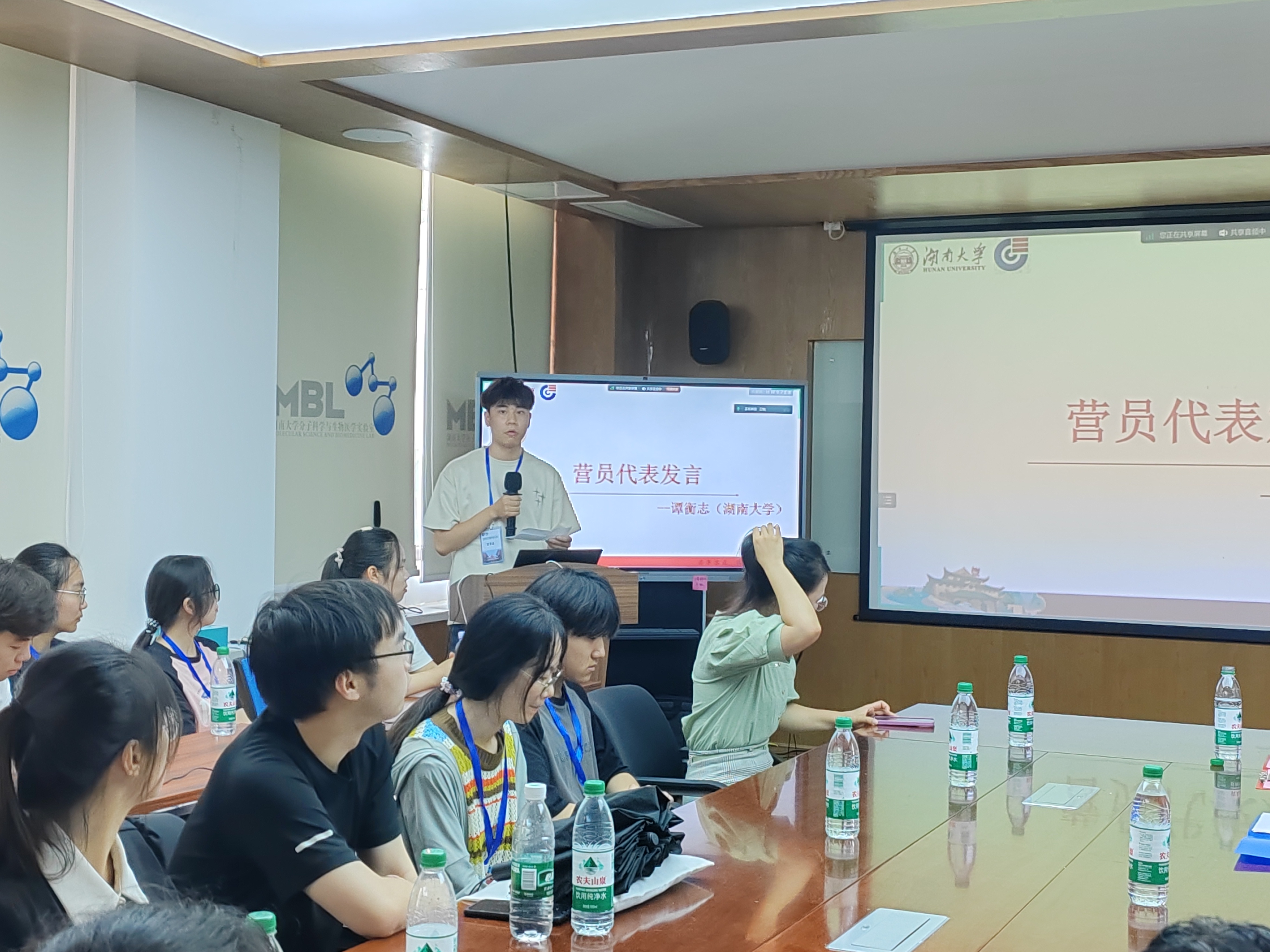 积极向上、严谨治学的学风,以及丰富的科研成果给他留下了深刻的印象,收获颇丰,希望能在这个优秀的平台上贡献自己的青春力量。老师代表周知玄教授分享了其科研经历,赞扬了营员们积极进取、勇攀科学高峰的热情,并期待与营员们明年在湖大再次相聚,共同前进。最后,化学生物传感与计量学国家重点实验室副主任刘松教授致闭幕词,他激励同学们继续努力提升自己的专业能力和科研能力,树立远大目标,胸怀科学报国理想,秉持求真穷理的学术品格,实事求是、敢为人先。