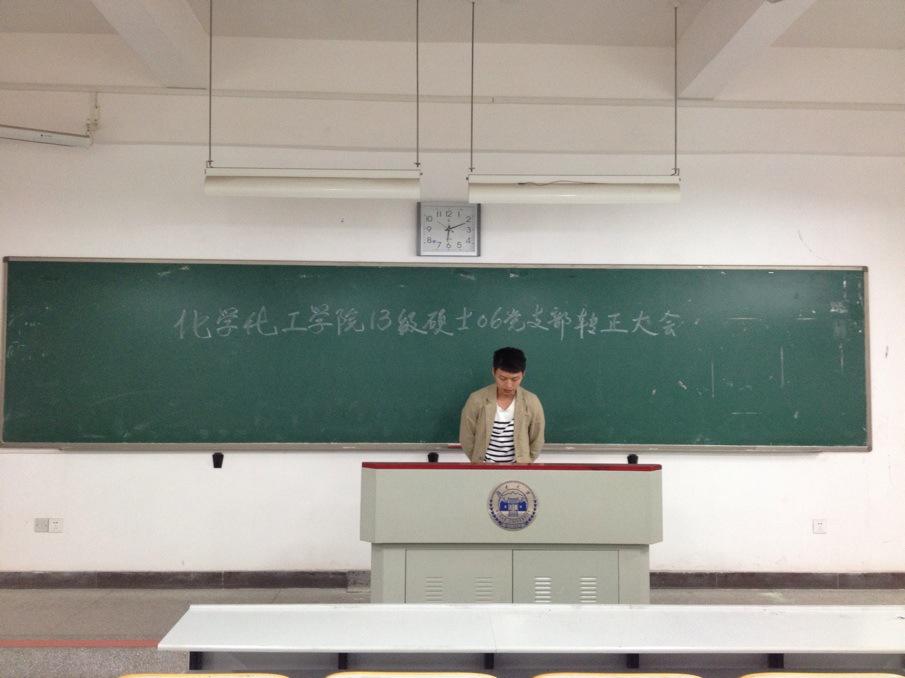 2013级硕士06党支部在综合楼召开了支部会议,会议主题是预备党员杨记同学的转正事宜,会议由支部书记朱天时主持会议,副书记高红旗记录。