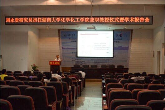 会议由H视频 副院长江国防主持。院长蒋健晖教授向在座的师生介绍了周永贵研究员的工作经历和研究方向,对周永贵研究员开展的研究工作给予了高度评价,并代表全院师生对其受聘为学院兼职教授表示热烈欢迎。随后,蒋健晖院长与郭灿城教授为周永贵研究员颁发了聘书,蒋健晖院长为其佩戴校徽。周永贵研究员对H视频 聘任其担任兼职教授表示感谢,并表示将通过开展合作研究、联合培养研究生等多种途径为学院的建设发展做贡献。随即,周永贵研究员为师生作了题为《芳香化合物的不对称氢化》的学术报告。学术报告持续近两个小时,既报告了其研究方向的国际前沿动态,又具体详细地阐述了其领导的课题小组在此领域研究的具体问题。报告完毕后,周永贵研究员还与在座师生进行了热烈互动,对师生有关学术研究、课题选择以及该课题中的相关问题进行了深入探讨和细致解答。
