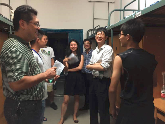 院长蒋健晖教授,副院长旷亚非教授,院党委副书记陈义红老师等党院领导及各新生班助理走访化工院15级新生寝室,关心学生的入住状况。