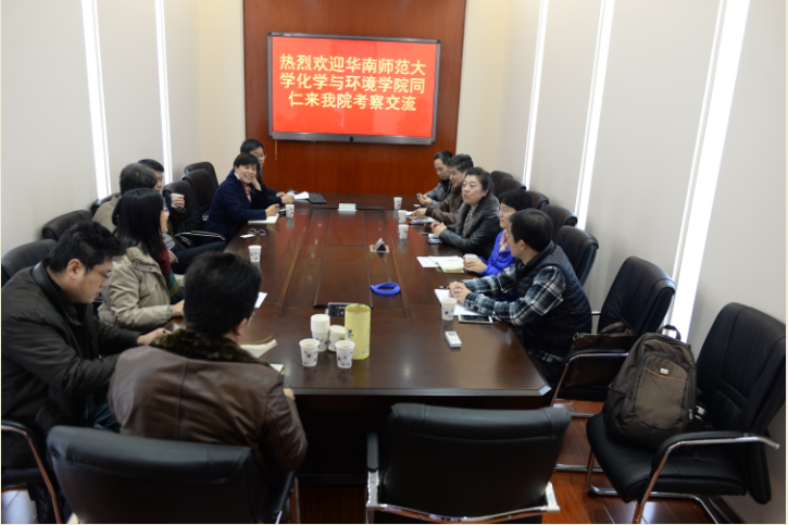 12月21日下午,华南师范大学化学与环境学院俞英院长带领学院党政领导班子及办公室人员一行5人来H视频 考察交流。H视频 蒋健晖院长、王玉枝书记及学院党政领导班子成员参加了交流座谈会。双方就学科建设及科研管理、人才引进与团队建设、本科教学和学生管理等方面进行了充分的交流与探讨,双方表示今后要进一步加强人才培养、科学研究等方面的合作。