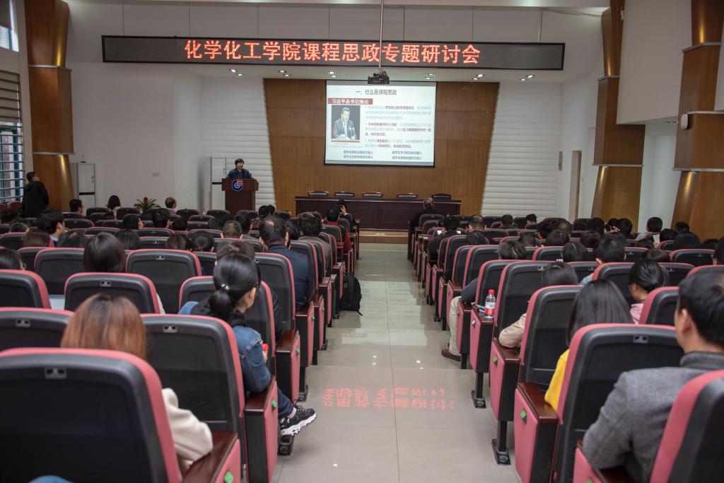 在新化工楼D区报告厅召开课程思政专题研讨会,围绕立德树人的根本任务展开研讨,学院全体教职工参会。学院党委副书记范媛吉主持会议,校党委副书记陈伟出席会议并指导。