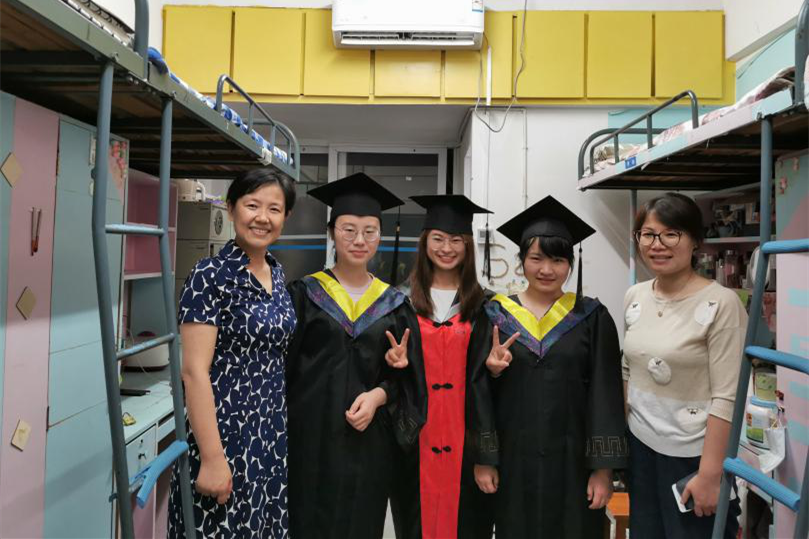 党委书记王玉枝、院长张晓兵、党委副书记范媛吉及学工办辅导员走访了化工院2020届本科毕业生寝室,欢送即将告别母校的2020届毕业生们,为要踏上新征途的同学们送上温暖的祝福。