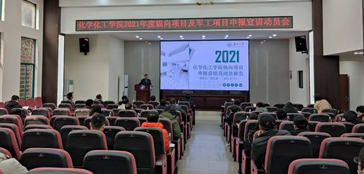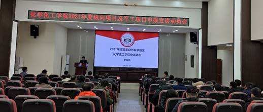 2021年度纵向项目及军工项目申报宣讲动员会在新化工院D区大报告厅举行。会议由副院长梁志武主持,院长张晓兵、科学技术研究院院长尹双凤,副院长兼军工办主任周炎涛、基础办主任唐晖等出席会议,学院80余位教职员工参与研讨。