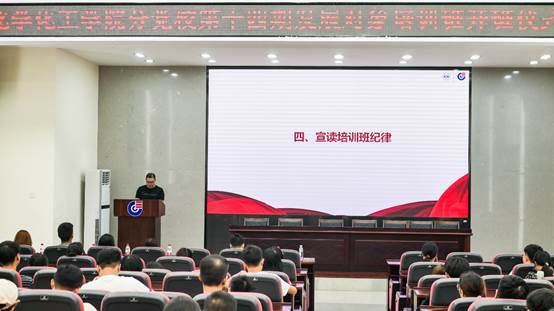 在雄浑豪壮的国歌声中,学院分党校第十四期发展对象培训班正式召开。大会第一项,潘刚峰书记对全体参训学员表示热烈欢迎,并对学员们的发展和成长提出三点期望:一是提高认识,明确培训目的;二是端正态度,力求学有所获;三是争先创优,发挥表率作用。潘书记鼓励学员们要牢牢把握此次教育的内容和要求,积极主动接受这场触及灵魂的思想政治洗礼,使自身在思想上来一次升华,政治上来一次淬炼,争取早日加入党组织!大会第二项,作为学员代表发言的19级本科化学专业的付于芯同学,为我们展现出了青年一代的活力与担当,展现出了青年一代为实现祖国的繁荣富强和中华民族的伟大复兴而不懈努力的决心!大会第三项,刘松书记宣读此次培训班的学员守则和纪律。刘松书记要求大家严格遵守党校学习纪律,服从管理,坚定理想信念,保持政治定力,不断提升完善自我,争取早日成为一名真正的共产党员!