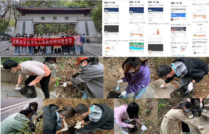 分析06党支部积极组织“岳来岳美”党日活动,以“兵分两路”的方式,延两条登山之路而上,积极消灭沿途上的每一处垃圾,为环境优美的岳麓山带走一些“不和谐音符”。同时,在支部内组织大家进行“步履不停”每日低碳步行打卡活动,让大家通过小一周的时间养成良好生活习惯。