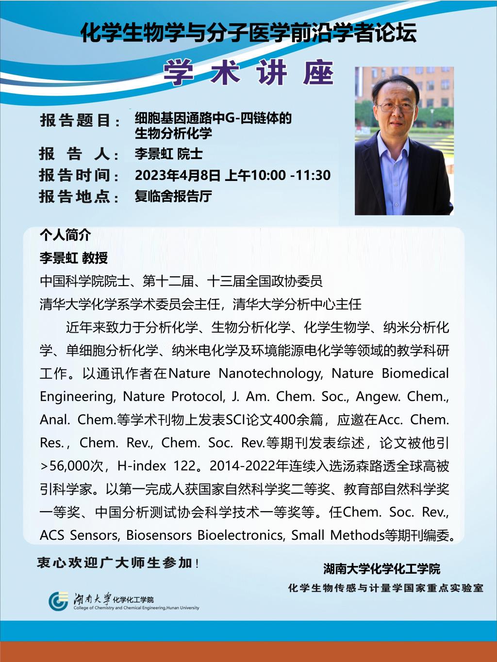 2023年4月8日清华大学李景虹院士学术报告会